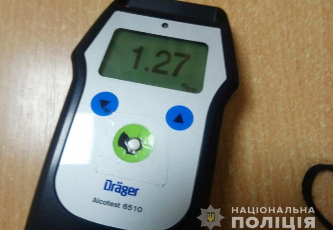 Під час перевірки водія на факт перебування його в стані алкогольного сп’яніння алкотестер драгер зафіксував результат – 1,27% проміле, що майже у сім разів перевищує допустиму норму.