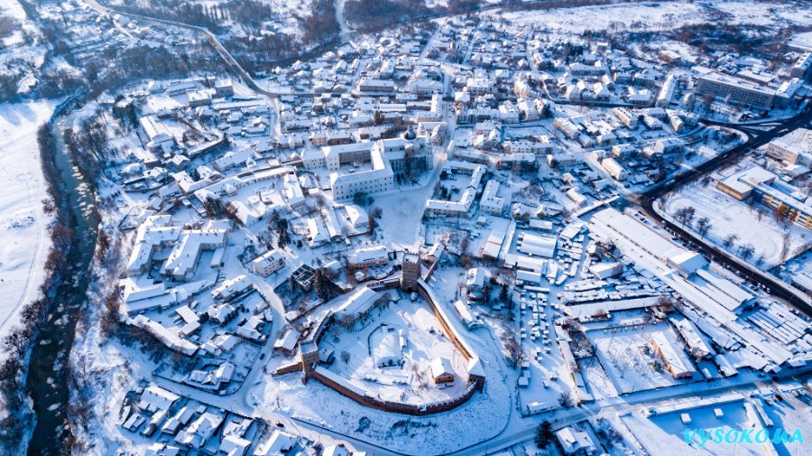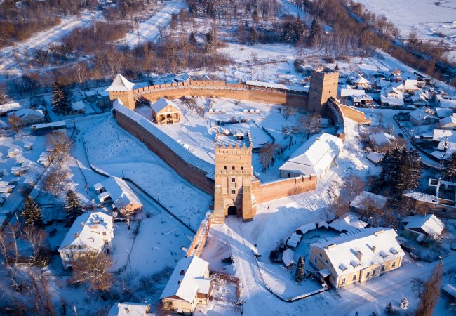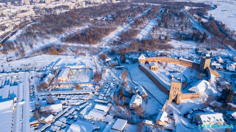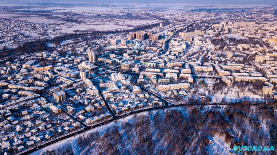 Старе місто та центр Луцька показали засніженими з висоти плашиного польоту.