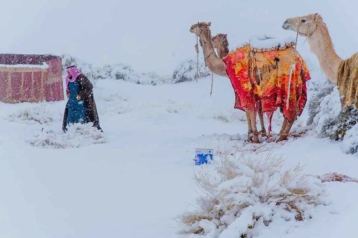 Він сфотографував засніжену пустелю недалеко від міста Айн-Сефра в Алжирі, верблюдів після снігопаду в районі Табук на північному заході Саудівської Аравії, а також овець, що стоять на вкритих льодом дюнах, коли температура впала до -3° C.