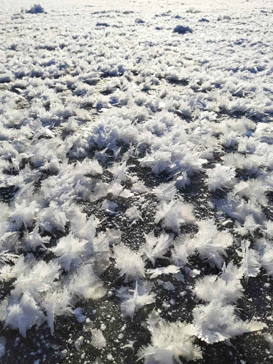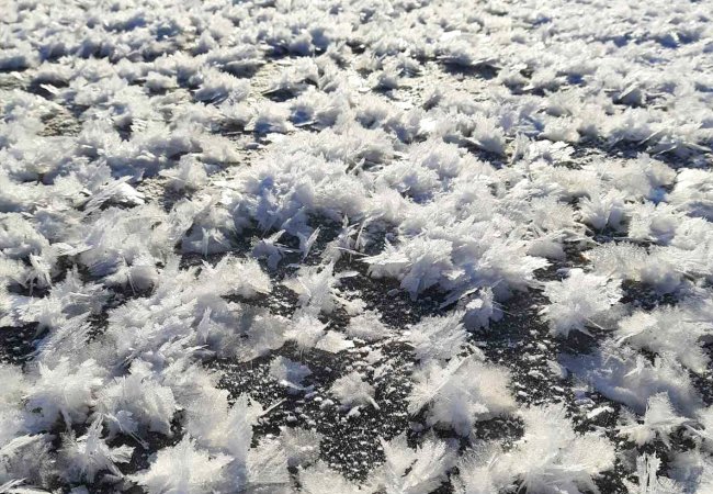Інформують, що «крижані квіти» – це кристали висотою в кілька сантиметрів, які утворюються на поверхні тонкого шару льоду. Своїми вигадливими формами ці крижані фігури дуже нагадують квіти, через що і отримали свою назву.