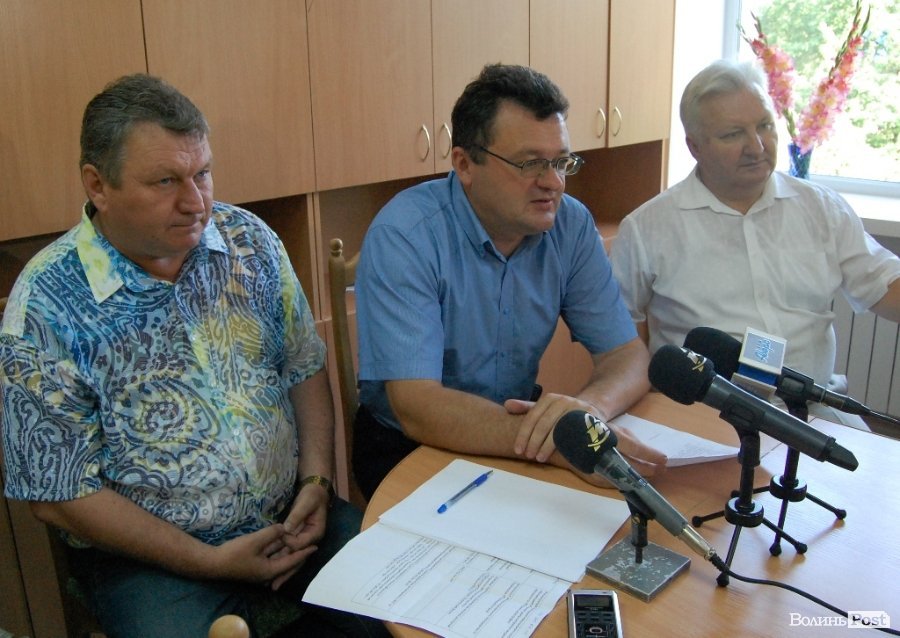 Зліва на право: директор ТзОВ «Житлобуд-2» Леонід Стефанович, начальник обласного управління охорони здоров'я Ігор Ващенюк і головний лікар обласного центру екстреної медичної допомоги та медицини катастроф Олег Куц