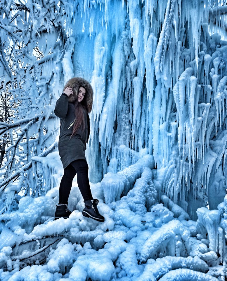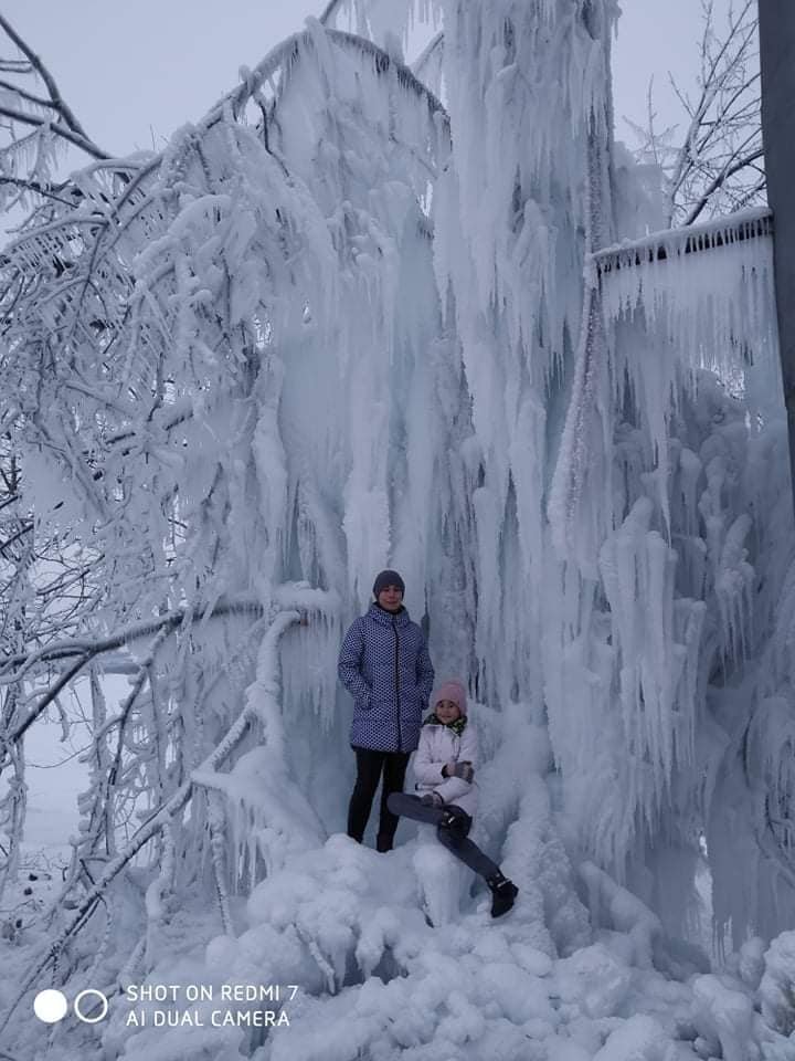 "Біля місцевої башні, у зв’язку з різким зниженням температури, замерзла вода і перетворилася у природню арт-інсталяцію. Вражаюче видовище. Тому, ділимося декількома світлинами із соціальних мереж наших мешканців та мешканок, зроблених біля казкової фотозони", - йдеться в повідомленні.