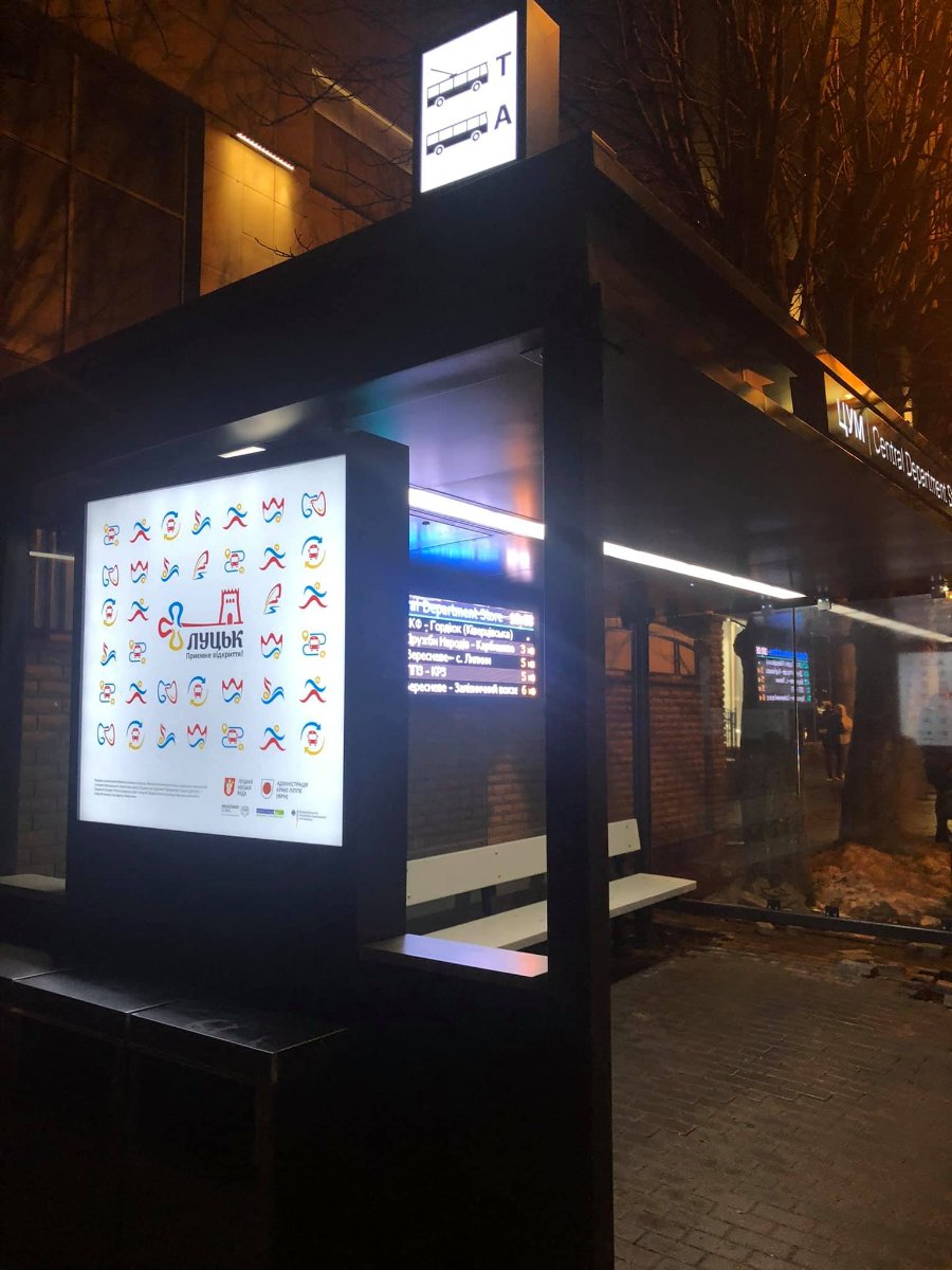 У центрі Луцька встановили першу «розумну» зупинкиу. Наразі вона працює в тестовому режимі.