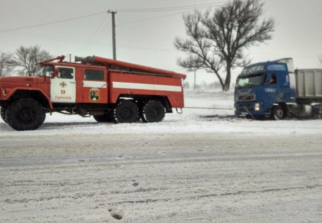 Рятувальники витягали буса і вантажівку: на Волині через негоду стались дві аварії. ФОТО