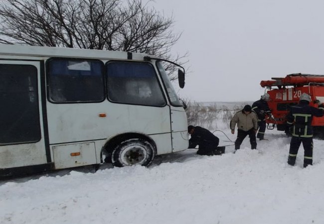 Так, 26 січня о 10:33 на трасі між селами Торчин та Білосток Луцького району до снігових заметів потрапили дві транспортні одинці, зокрема бус Mersedes та рейсовий автобус сполученням «Луцьк-Садів-Кошів» із 10-ма пасажирами, які занесло на узбіччя у сніговий замет, - інформує УДСНС України у Волинській області.