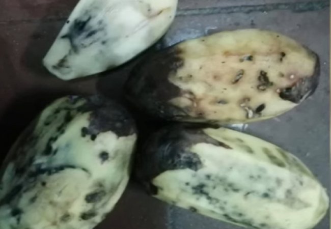 Жінка прийняла товар, проте годувати таким дітей побоялася. Картопля була гнила, а курятина не випотрошена та сумнівної якості. Про це йдеться в сюжеті Фактів.