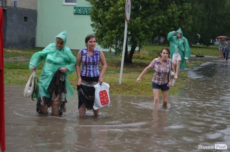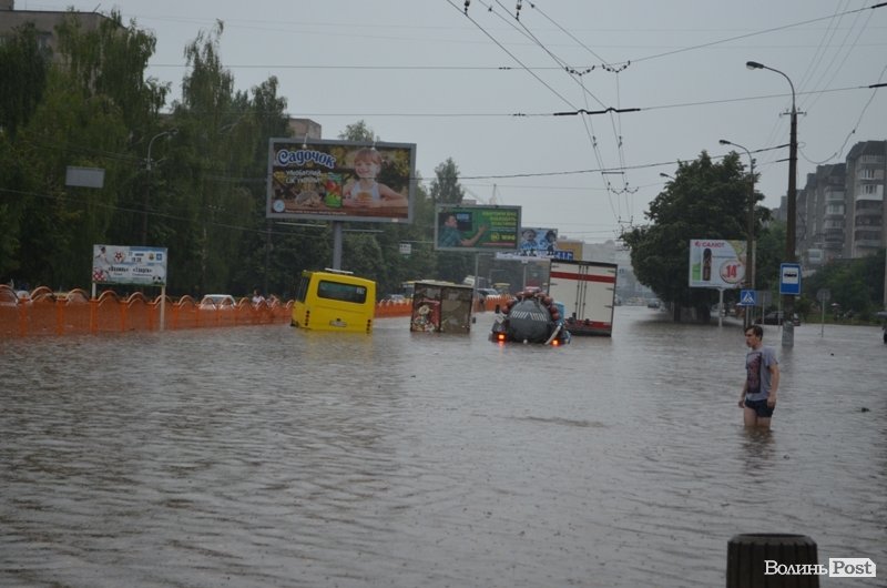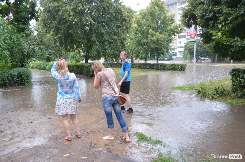 У вівторок 30 липня у Луцьку на проспекті Соборності та Відродження через стихію машини зупинялися і глохли, залишаючись «у полоні стихії», а люди додали тротуари і пішохідні переходи, знімаючи взуття, закочуючи спідниці і штани.