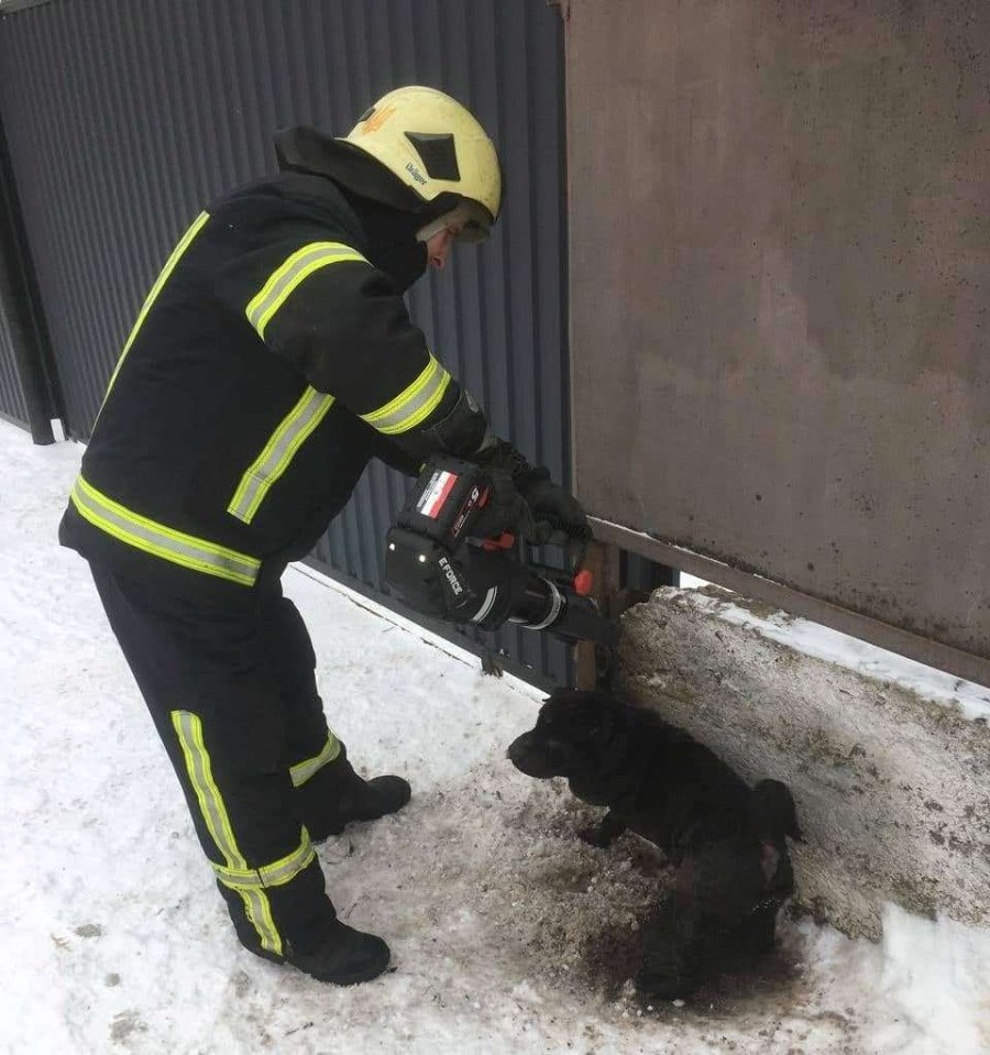 Рятувальники застосували спеціальний гідравлічний інструмент, аби визволити песика.