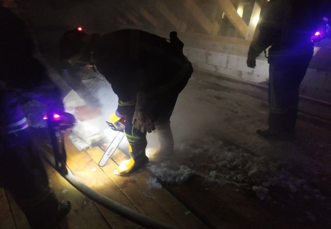 На місце виклику направили рятувальників 9-ї ДПРЧ. Після прибуття до місця виклику рятувальниками встановили, що поблизу димоходу горить перекриття житлового будинку.