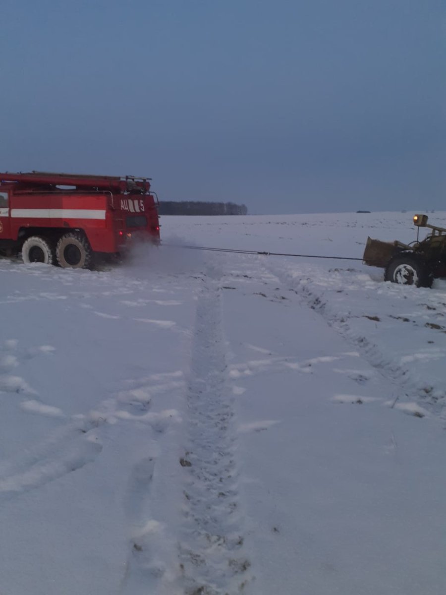 Особовий склад 5-ї Державної пожежно-рятувальної частини УДСНС України у Волинській області витягнули грейдер за допомогою буксирувального тросу з кювету на безпечну ділянку дороги.