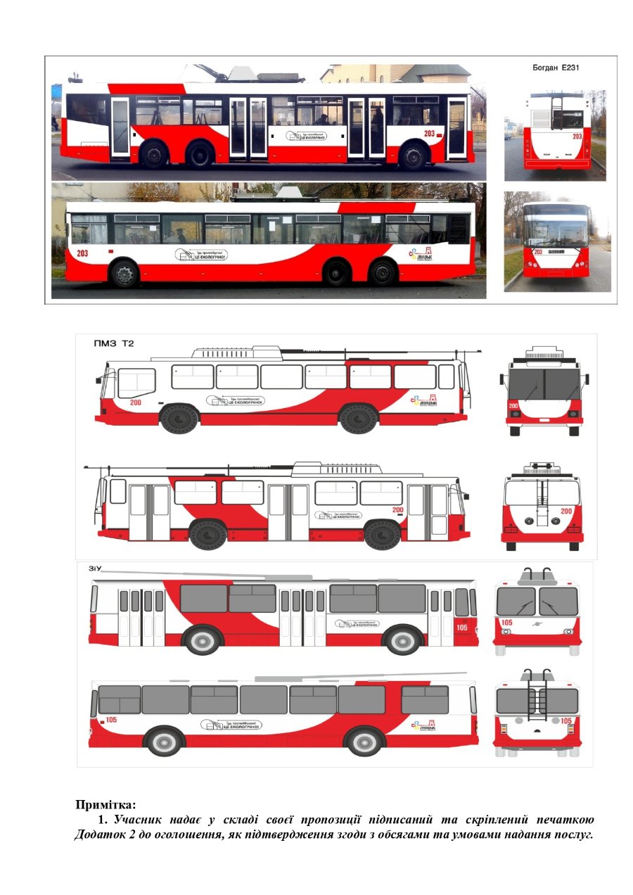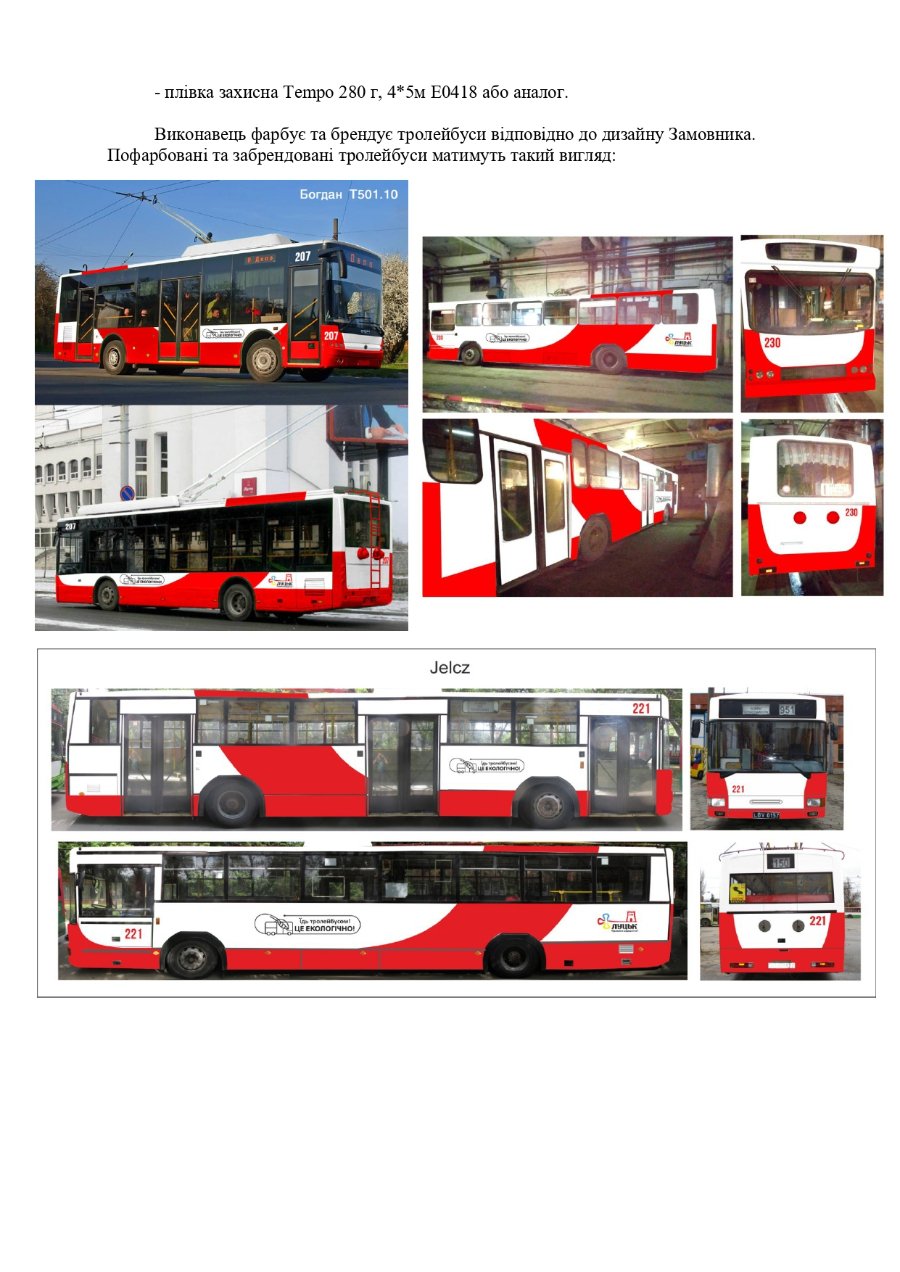 Виконавець зобов’язаний надати послугу з фарбування та брендування 17 тролейбусів відповідно до затвердженого дизайну.