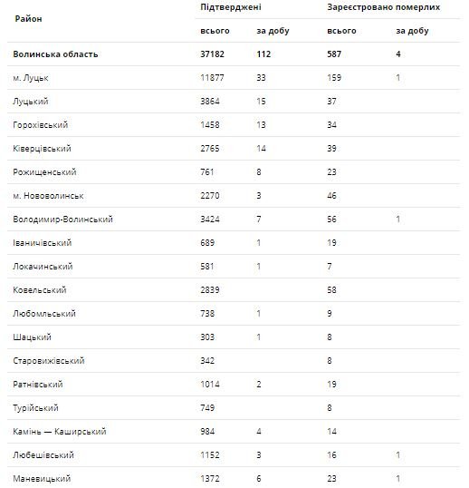 За останню добу на Волині зареєстрували 112 нових підтверджених випадків коронавірусної хвороби COVID-19 (з них дітей – 7, медпрацівників — 7). Одужало за добу – 64 особи, летальних випадків – 4.
