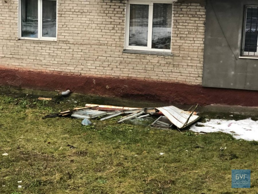 З балкону на 3-му поверсі випала віконна рама. На щастя, ніхто не постраждав. Тротуар, де ходять перехожі, розташований далі.