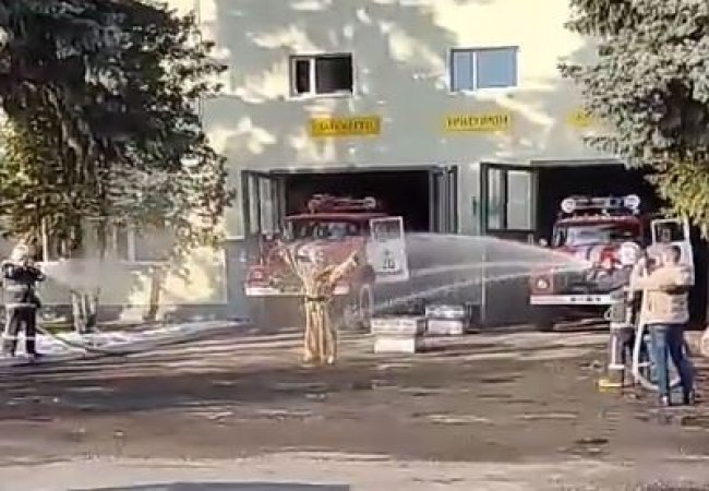 Згідно з неписаною традицією, під звуки сирени Валентина Носка облили струменями води з двох пожежних стволів.