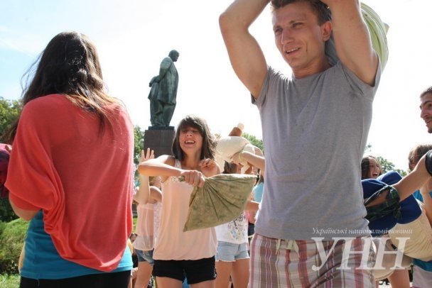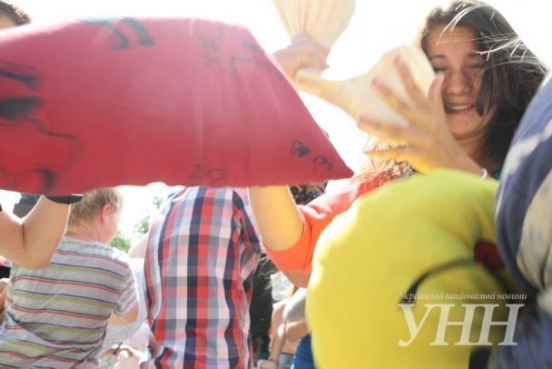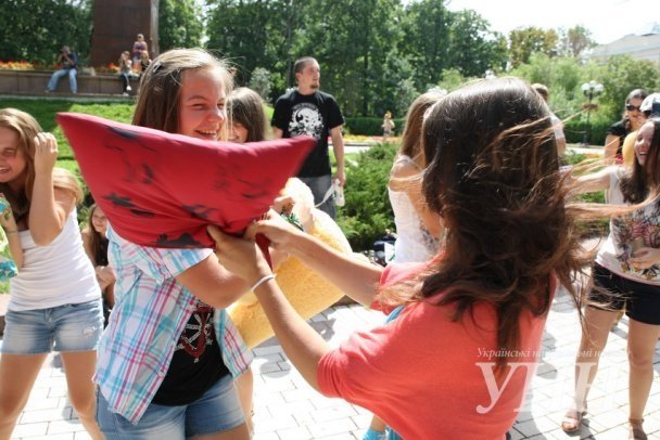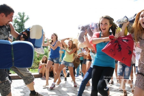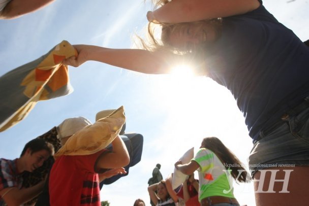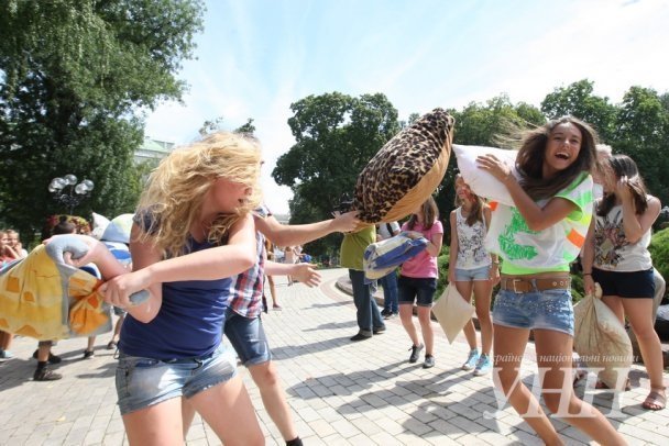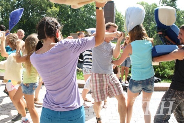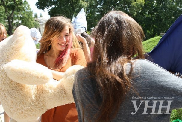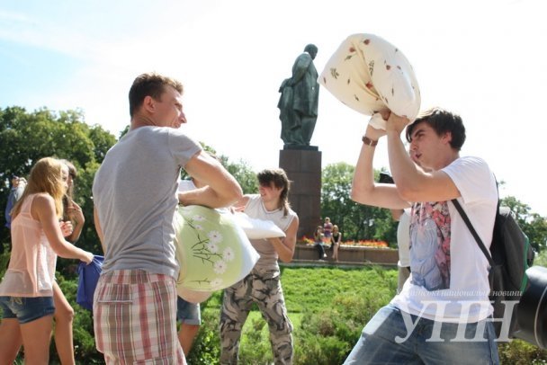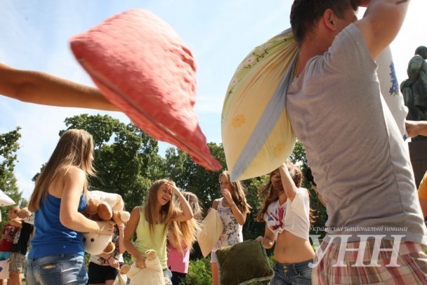 Сьогодні, 31 липня, в Києві у парку ім.Шевченка відбувся флешмоб, під час якого учасники билися подушками, ‒ пише ТСН.