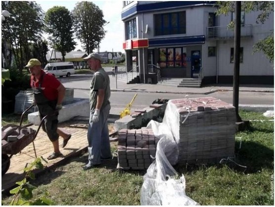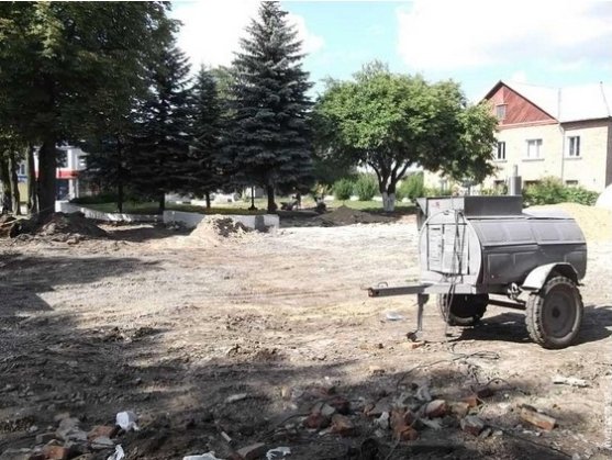 "Пильно вдивляючись у далечінь орлиним зором, укладники завчено-автоматичними рухами швидко виконували покладені на них рідною міськрадою завдання ударного облаштування доріжок скверу для трудящих міста. А в цей час зварювальники, випереджаючи графік робіт на два з половиною дні, героїчно закінчували демонтаж та монтаж теплотрас. Щоб мешканці прилеглої до кафе території не відчували погіршення свого життя вже взимку й не звертали уваги на нічні шумові ефекти та вереск приморочених відвідувачів.