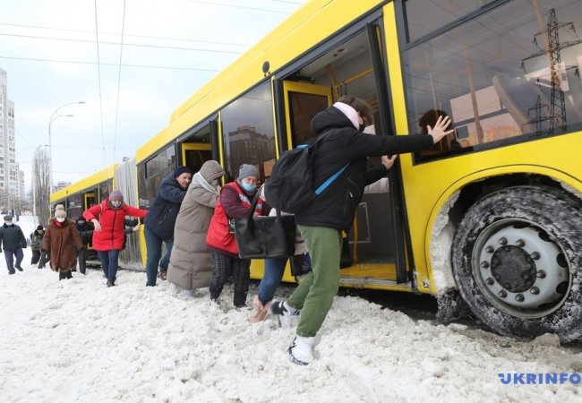 У Києві пасажири штовхали автобус, що застряг у снігу. ВІДЕО