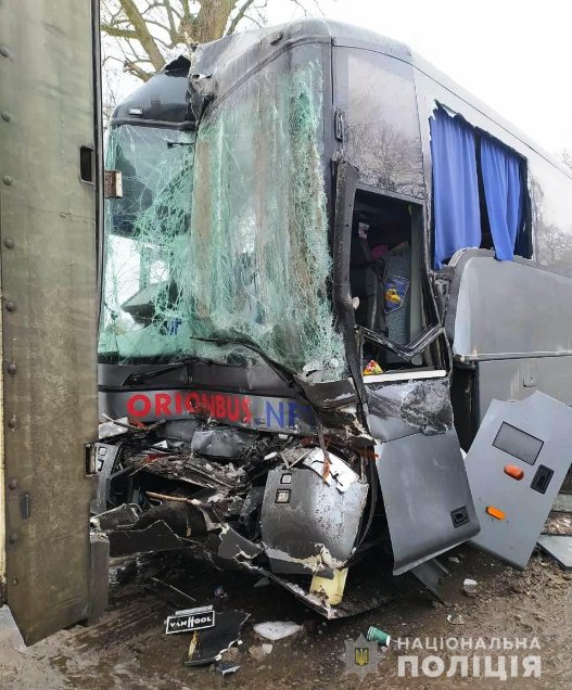 Удар був такої сили, що від передньої частини автобуса нічого не залишилось. На щастя усі пасажирі живі. Водія автобуса забрала швидка, але очевидці кажуть, що травми у чоловіка не важкі.