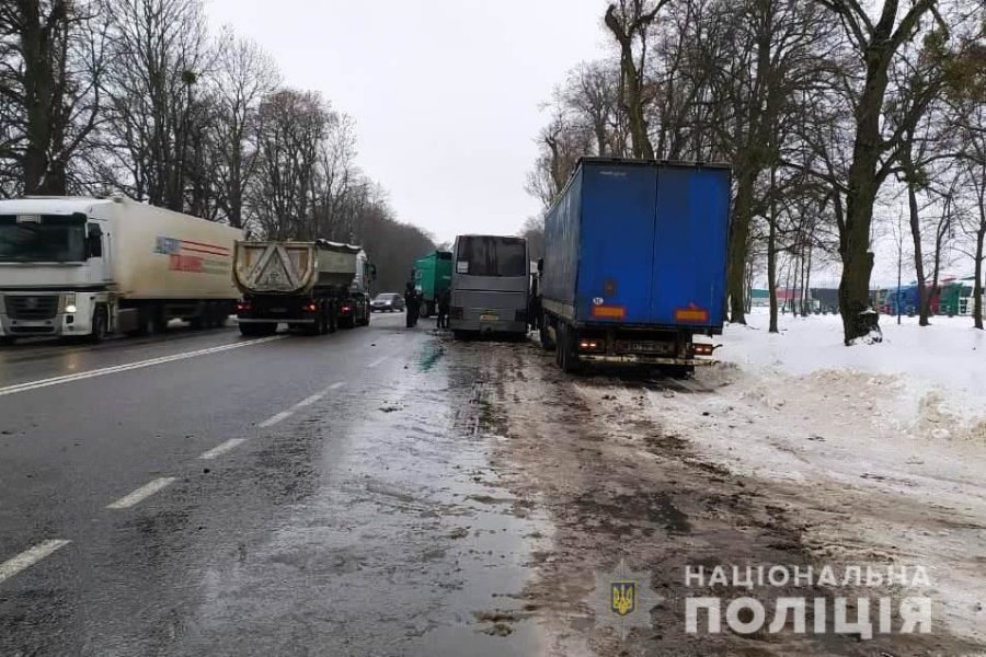 У Вінницькій області вранці 10 лютого сталася масова аварія за участі пасажирського автобуса, чотирьох вантажівок і двох легкових автомобілів.
