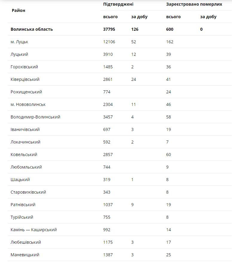 За останню добу на Волині зареєструвли 126 нових підтверджених випадків коронавірусної хвороби COVID-19 (з них дітей – 8, медпрацівників — 19). Одужало за добу 75 осіб, летальних випадків немає.