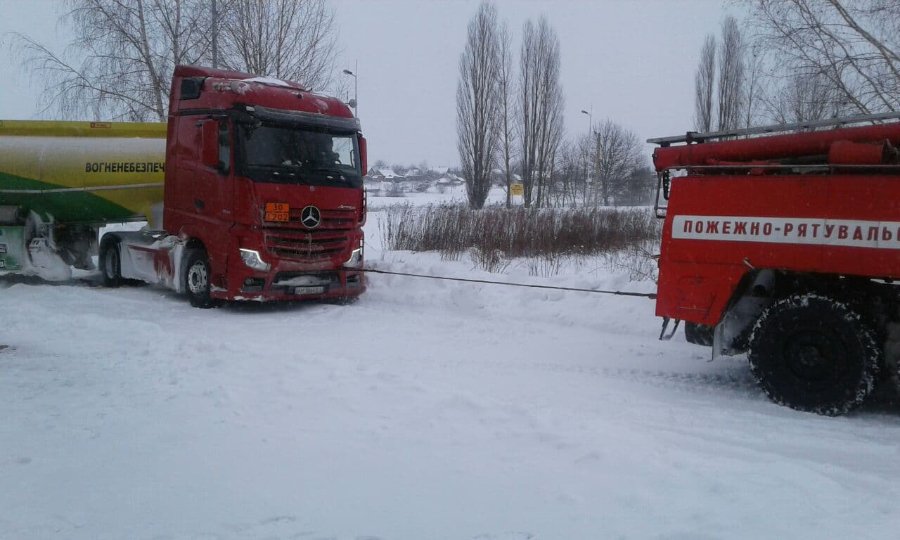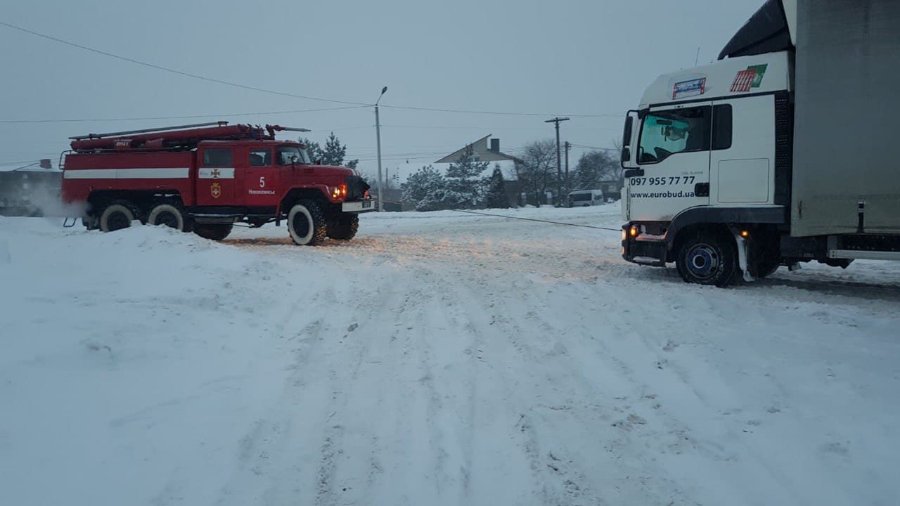 Зокрема, на вулиці Гулака-Артемовського працівники 25-ої Державної пожежно-рятувальної частини відбуксирували вантажний автомобіль, що транспортував резервуар з киснем для пологового будинку й опинився у сніговому заметі.