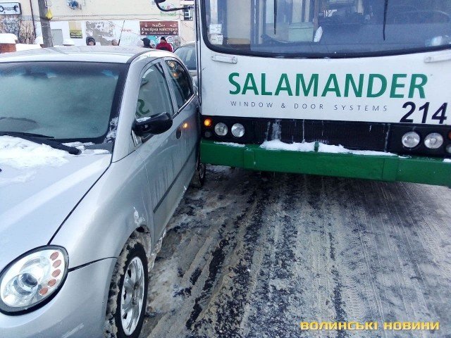 Зі слів свідків, 13 лютого о 16:20 на вулиці Винниченка,14 тролейбус в’їхав у легковики Lexus та Chery, що були припарковані на мосту з порушенням правил дорожнього руху, - пишуть Волинські новини.