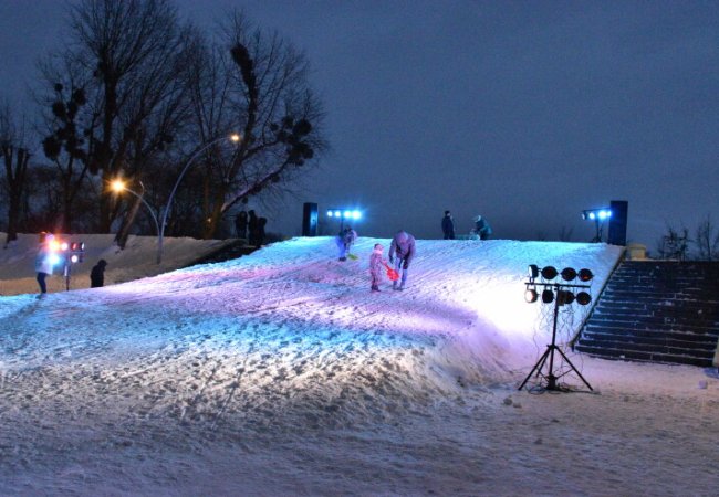 В парку на дамбі навозили снігу й зробили гірку. На гірках по вул. Глушець зробили освітлення, щоб ввечері кататись було безпечніше.