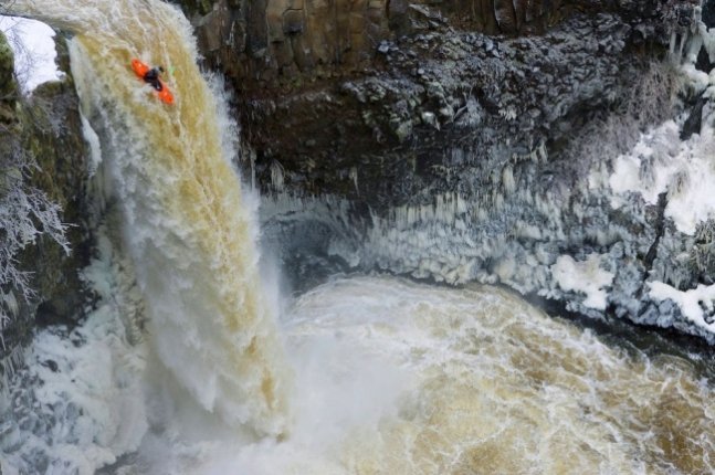 Девід Карлайер не побоявся того, що його змиє водоспад і сфотографував, як Гері Еджворт на швидкості влітає в безодню Нижньої Меси в Айдахо, США.