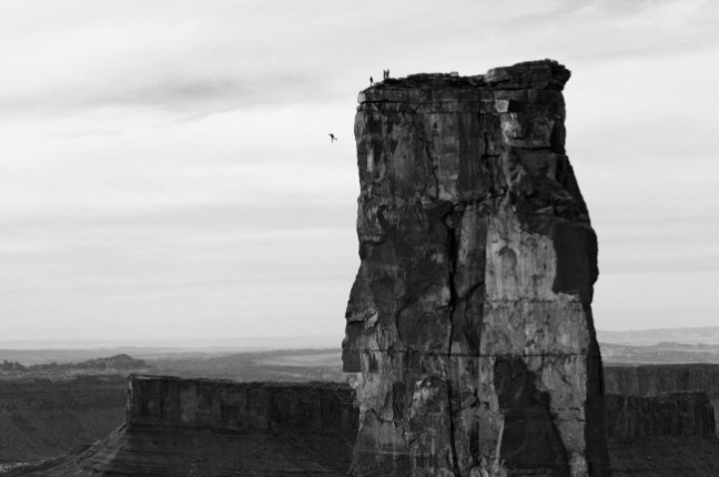 Фотограф Крістл Райт часто ризикує не менше від спортсменів, яких фотографує. Щоб отримати кращий знімок стрибка Майкла Томчека, фотографу довелося вилізти на одну з найвищих скель у Долині Замків, штат Юта, США.