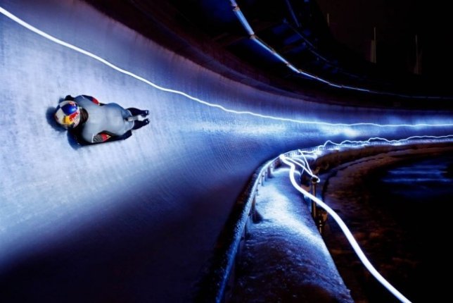 Аня Хубер спускається по крижаному жолобу. Фотограф: Рутгер Пола. Місце: Шенау-ам-Кьонігзеє, Німеччина.