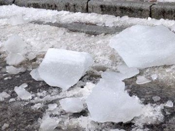 Могла впасти на дітей: у Луцьку брила льоду потрощила автівку таксі