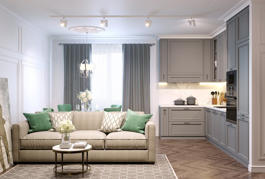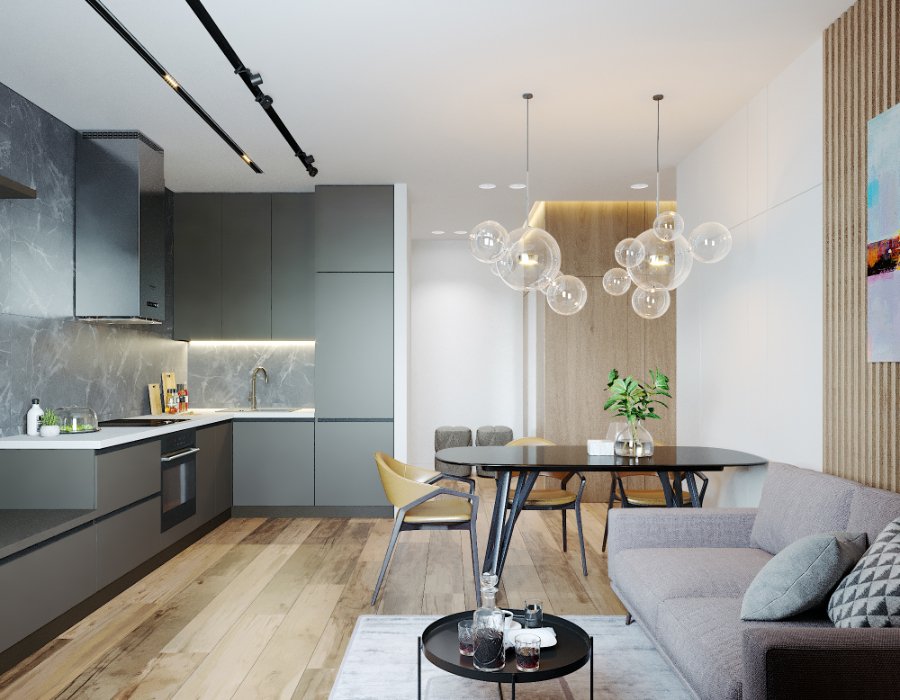 У кухнях-студіях важливо правильно підібрати дизайн, щоб з одного боку - розділити зони приготування їжі та відпочинку, а з іншого - щоб загалом інтер’єр виглядав гармонійно.