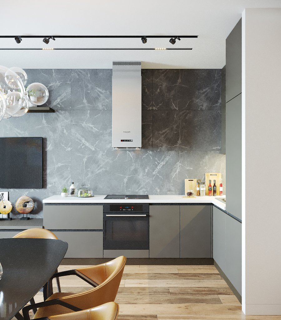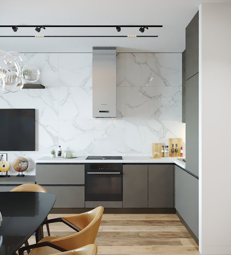 Приклади дизайну кухонь-студій в квартирах ЖК “Амстердам” (с. Струмівка) підготувала студія РANDA.