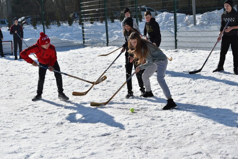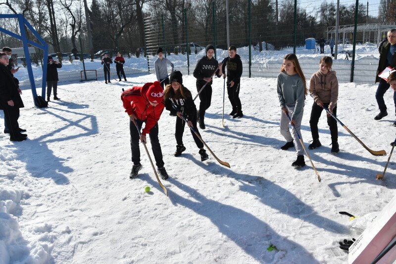 На мультифункціональному майданчику, що на вулиці Глушець, відбувалися змагання з флорболу, спортивні естафети та зимові розваги.