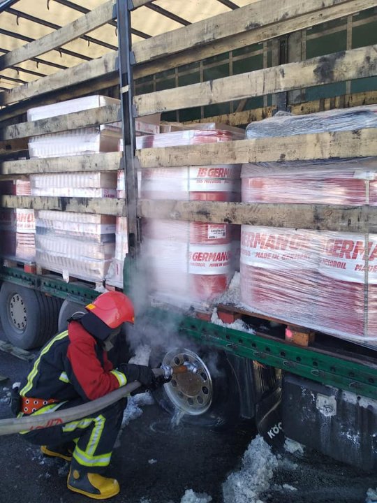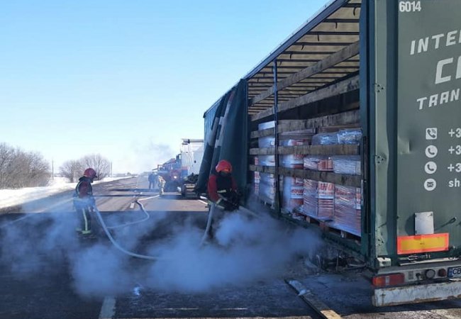 Прибувши на виклик, рятувальники встановили, що загорілося заднє колесо напівпричіпу вантажівки. Від водія вогнеборці дізналися, що у причепі знаходиться 20 тонн машинного масла.