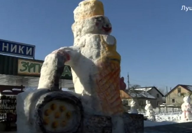 Місцеві жителі, які долучилися до створення сніговика кажуть: спершу ніхто й не сподівався, що скульптура вийде вищою за місцеву зупинку громадського транспорту. Завершували ліпити вже з допомогою драбини.