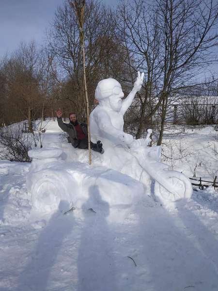 У селі під Луцьком зліпили величезного сніговика-байкера. ФОТО