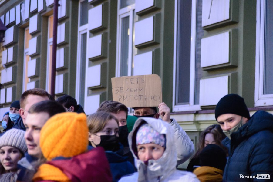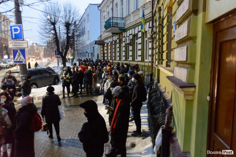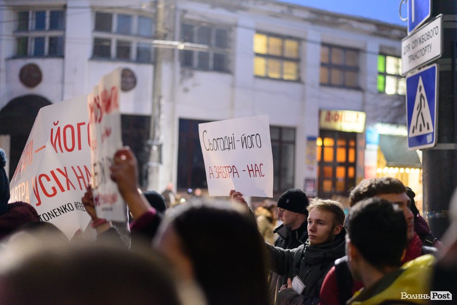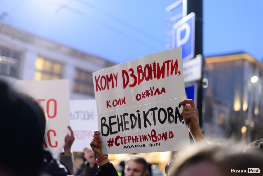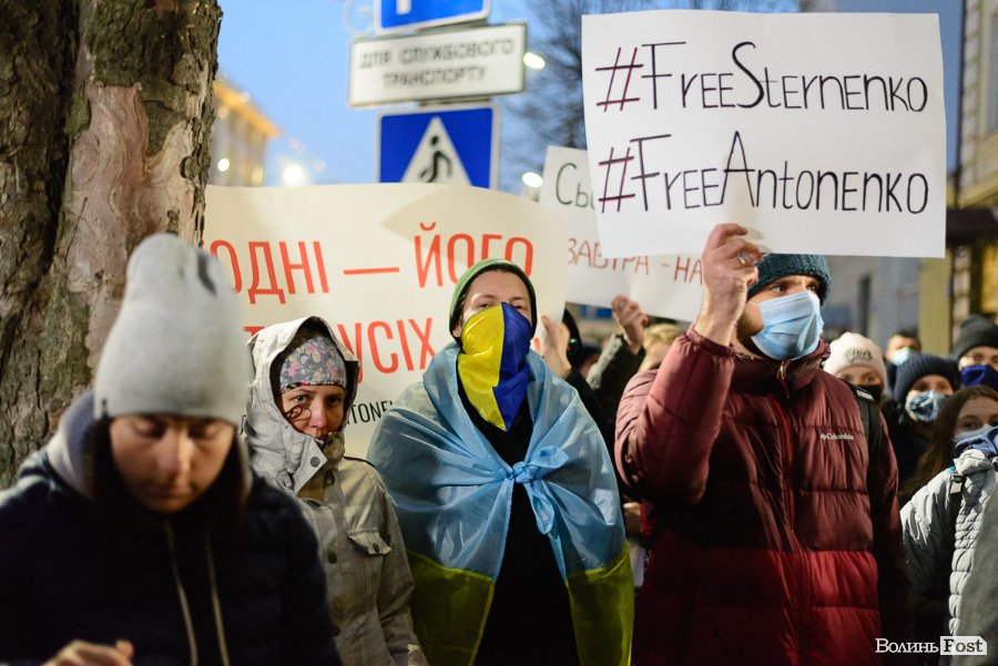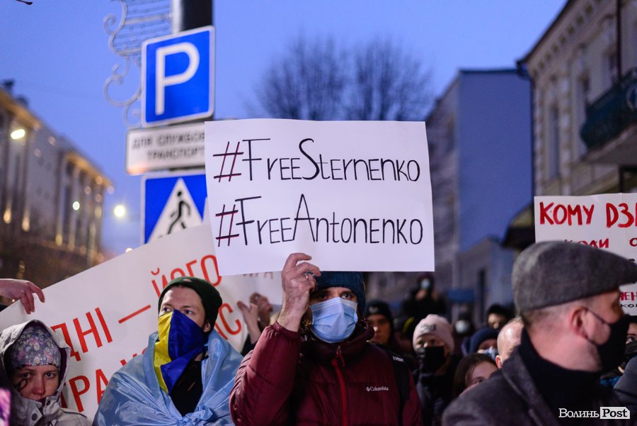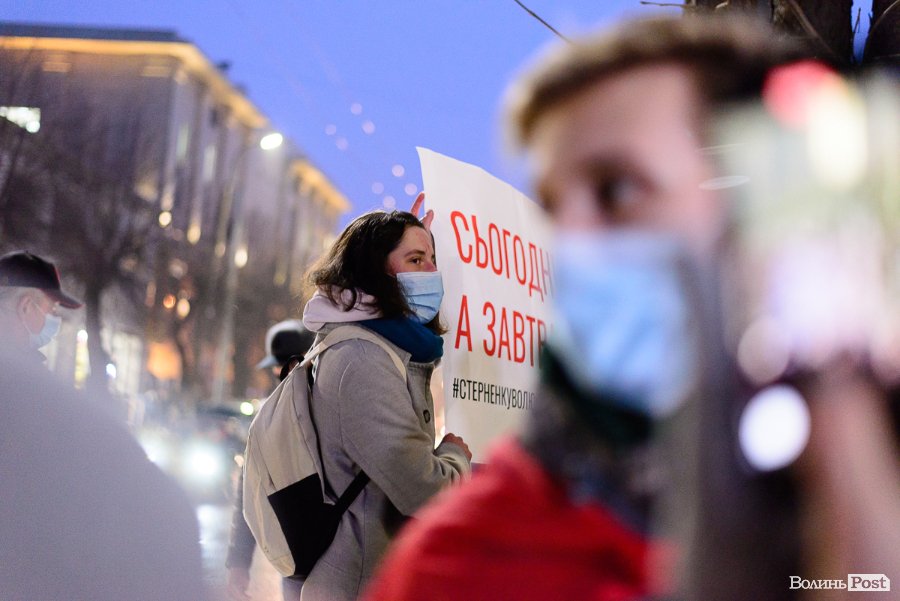 У Луцьку біля будівлі обласної прокуратури, що на вулиці Винниченка, 15, зібралася майже сотня людей. Вони не згідні з ухваленим рішенням суду щодо ув'язнення одеського активіста Сергія Стерненка.