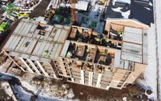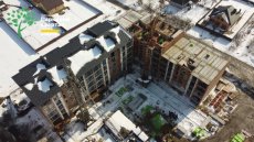 - 3 і 4 секції: домуровують і перекривають 5 поверх; мурують стіни шахти ліфта; довстановлюють вікна.