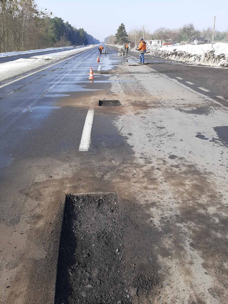 Коливання температури повітря між плюсовими та мінусовими позначками та перезволоження дорожнього полотна призвели до утворення ямковості на багатьох ділянках шляхів, що чекають ремонту. Аби забезпечити безпечний проїзд, на шляхах державного значення за сприятливої погоди активно проводяться аварійні роботи з ліквідації вибоїн дорожнього покриття.