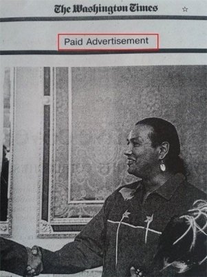 Матеріал про зустріч Віктора Януковича з представниками племен індіанців розміщений в американському виданні під плашкою «реклама».