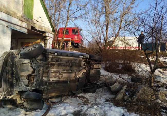 «26 лютого о 07:48 до Служби порятунку «101» надійшло повідомлення про те, що на вулиці Журавлиній селища Чаплинка Петриківського району легковий автомобіль здійснив виїзд на територію приватного домоволодіння та зіткнувся з будівлею», - йдеться у повідомленні.