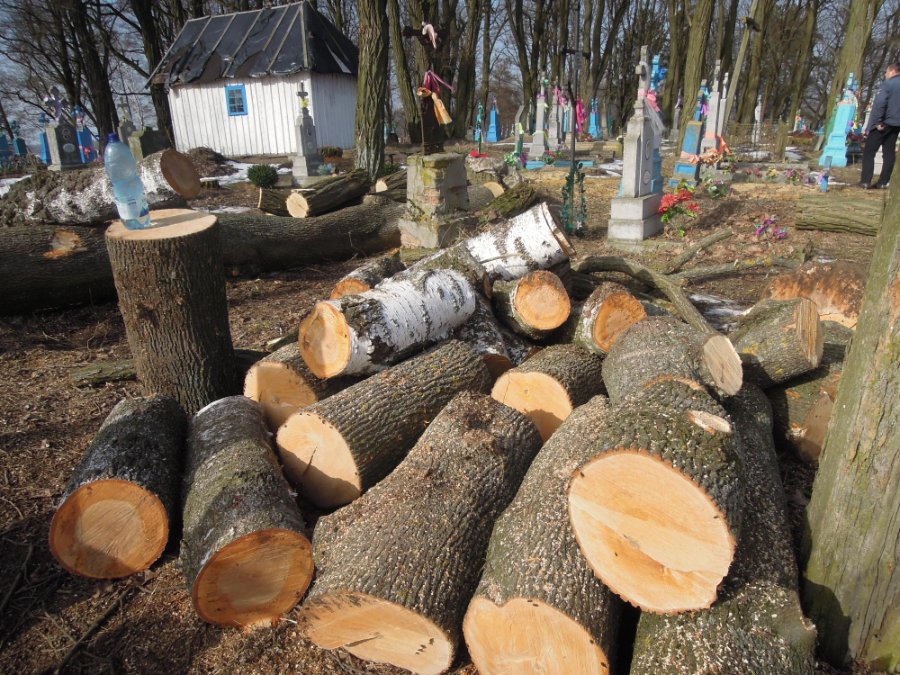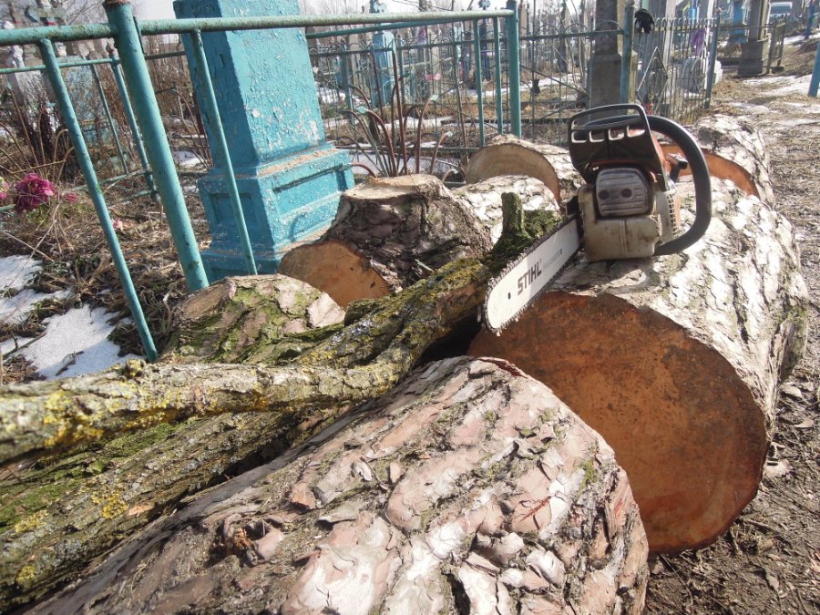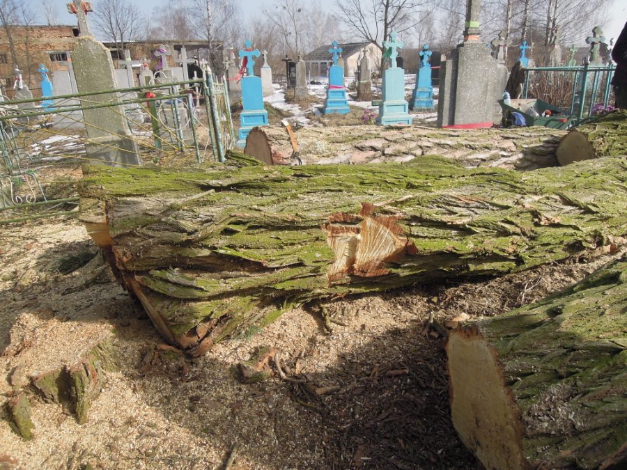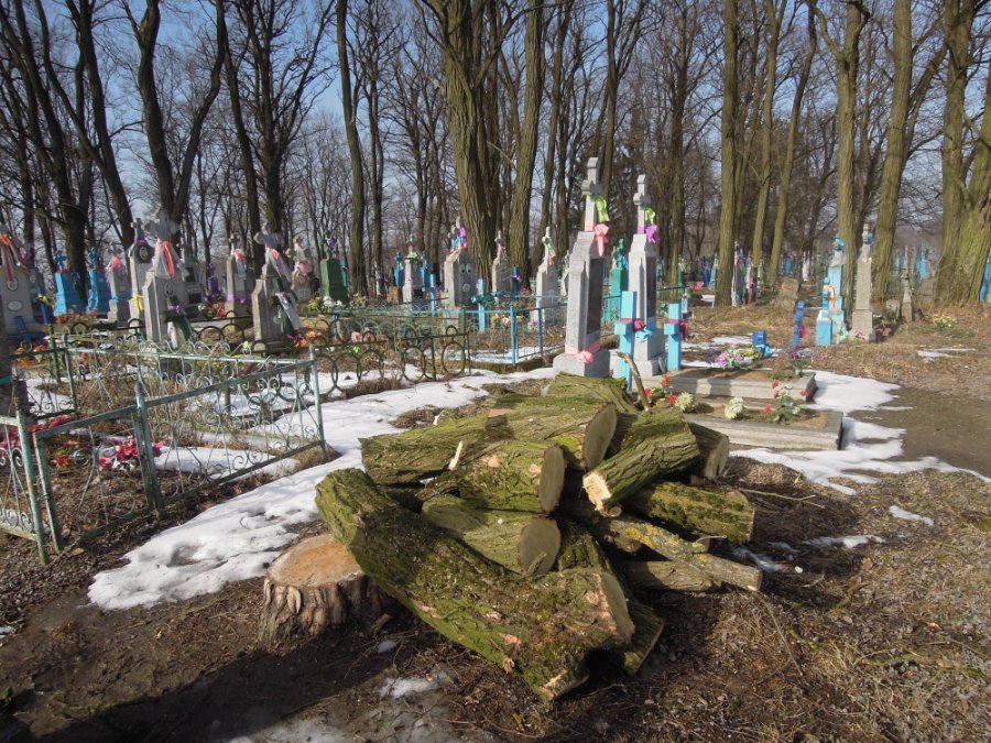 На території цвинтаря зрізають дерева, гілки яких падають і пошкоджують пам’ятники та огорожі. Дерева старі і досить високі, тому на кладовищі працює спеціаліст, якому допомагають місцеві жителі.