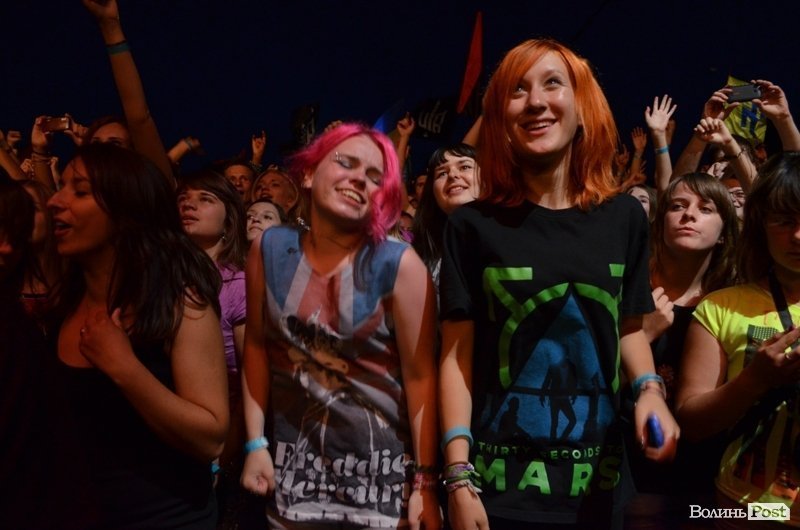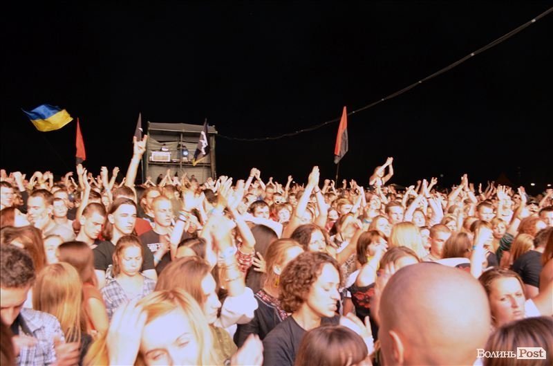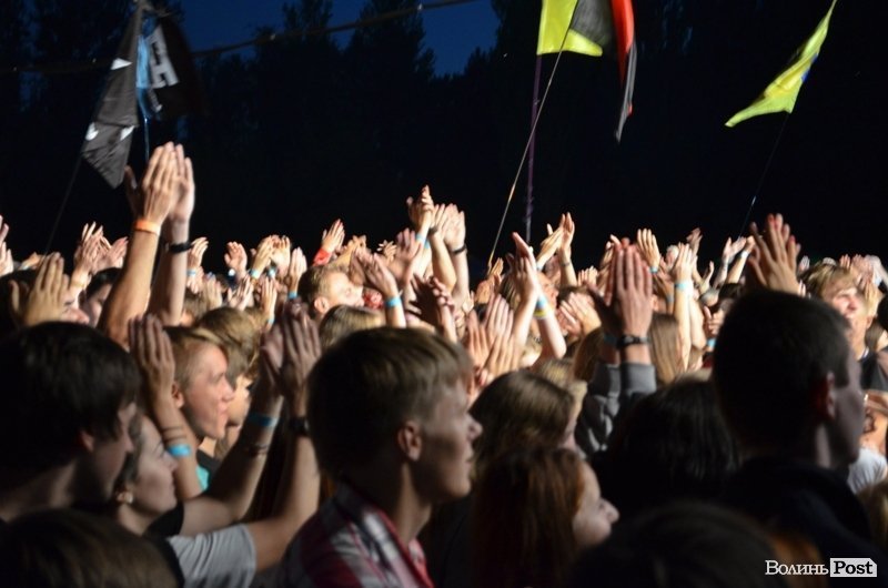 21:40 Розпочався виступ гурту «Тартак». Спочатку біля сцени слемились хлопці. Втім, лідер гурту Сашко Положинський зазначив, що хоче бачити попереду дівчат.