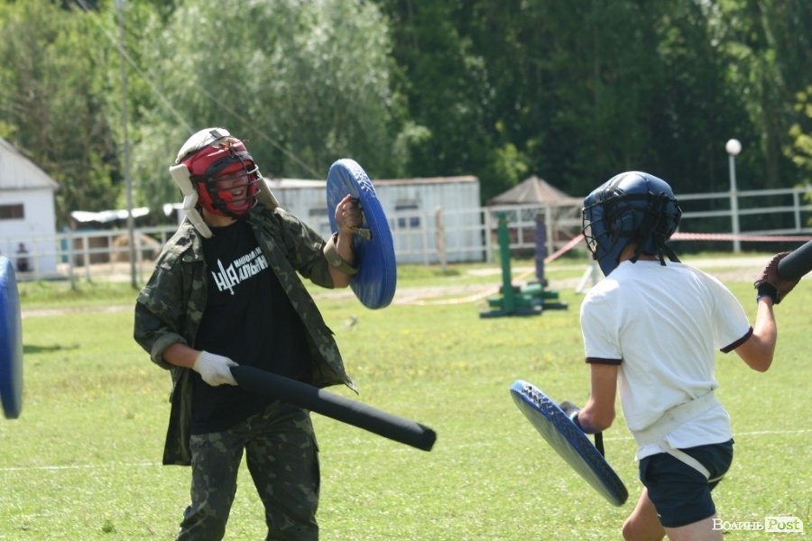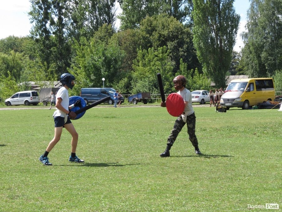 Тим часом посеред поля відбувається майстер-клас від луцького лицарського клубу. Як обіцяють, відбудуться ще показові лицарські турніри та майстер-класи з середньовічного бойового мистецтва.
