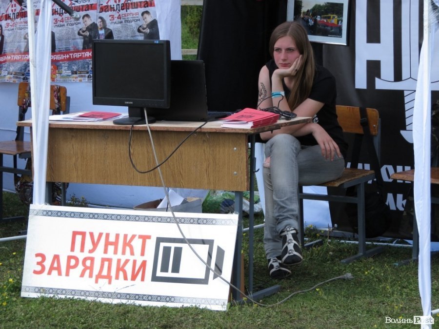 Обіцяли організатори, що під час «Бандерштату» не тільки себе можна буде «підзарядити» патріотичним духом, а й телефони, фотики та інші девайси електрикою. Відповідний пункт відчинений, але практично зарядити нічого не можна. Дівчата розводять руками: мовляв, немає електроенергії.