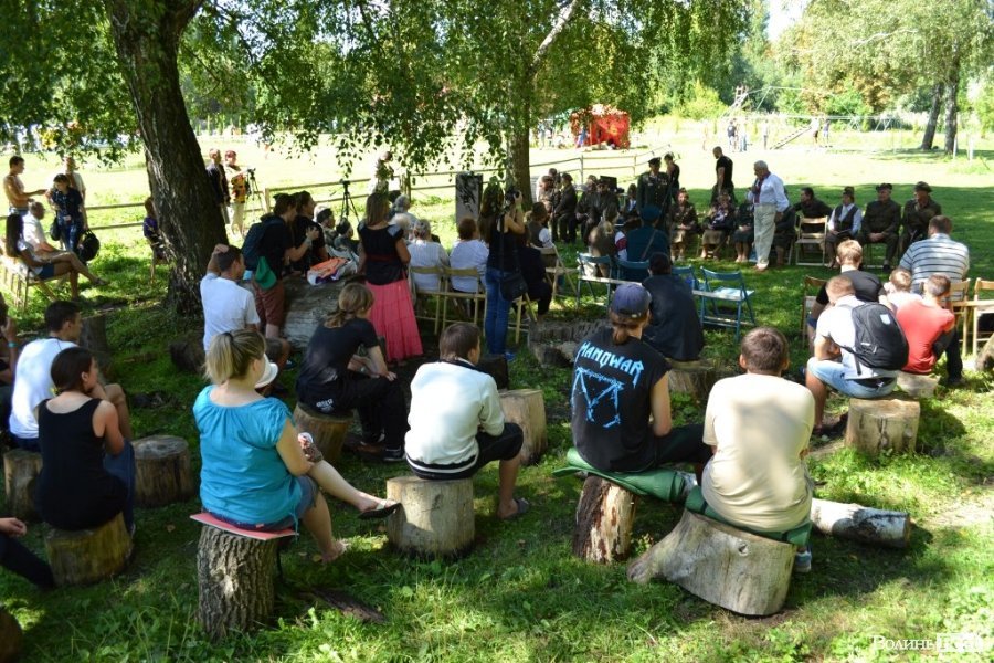 Розпочалася гутірка із ветеранами УПА. Голова Волинського крайового братства ОУН-УПА Василь Кушнір розповідає молоді про те, хто такий націоналіст і за що боролись ОУН-УПА. «Націоналіст – це той, хто готовий пожертвувати своїм життям заради добробуту своєї нації», - ділиться думками ветеран. З його слів, в УПА було майже півмільйона українців, багато з них зазнало тортур, каторг, але лишилися живими.