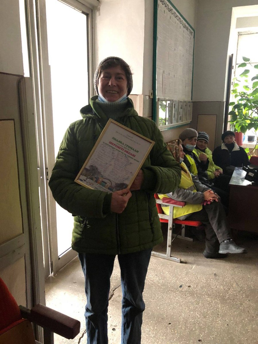Знаю цю жіночку, як йду до дітей, бо мої діти живуть на ДПЗ. Дійсно її можна було бачити всюди на прибудинкових територіях ДПЗ, зі всіма людьми чемно поводиться і перша здоровкається до всіх, таке враження, що вона одна там на районі працює двірником. Бачив, що вона не тільки займається прибиранням території, а як сама підрізала кущі та квітники, виносила траву та утримувала у чистоті територію біля контейнерів зі сміттям та прибирала біля під'їздів багатоповерхівок. Вона працьовита і любить порядок та чистоту, людина працює не тільки за гроші, їй треба не подяку висловлювати народну, а збільшити місячне грошове забезпечення, щоб другі такі як вона двірники не дорікали та не казали їй, що вона дарма працює. А ось збільшать наприклад їй зарплату і буде стимул в інших двірників рівнятись на свою колегу.