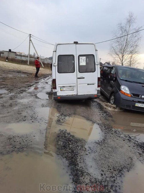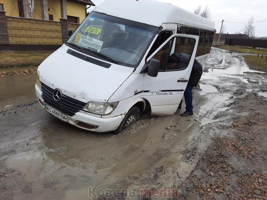 4 березня у Ковелі на вулиці Модеста Левицького (район П’ятихатки) на розбитій дорозі у багнюці застрягла маршрутка «№26 Вокзал – Левицького».