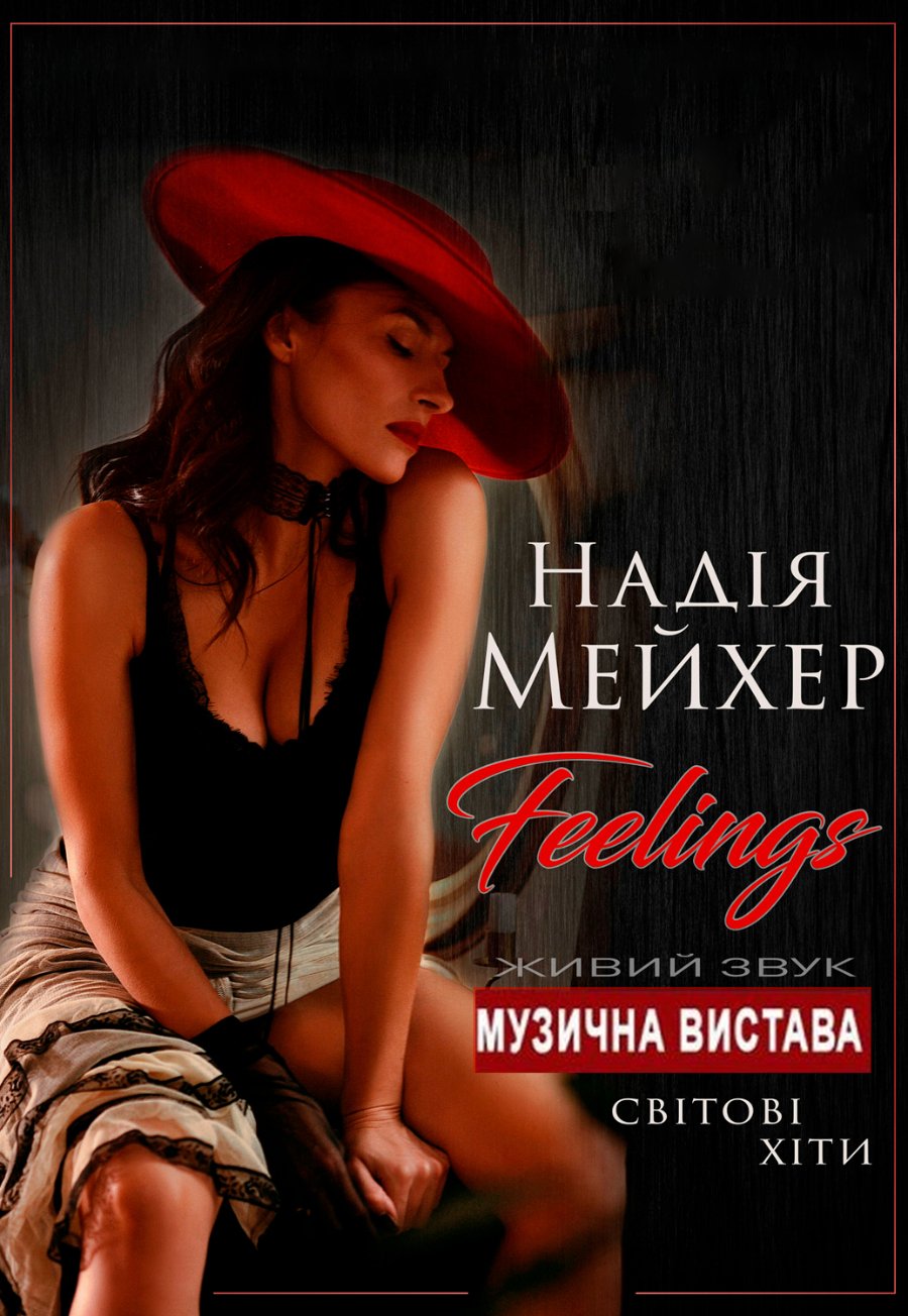 О 18 годині у драмтеатрі Надія Мейхер презентує свою музичну моновиставу «Feelings». Співачка виконає авторські вірші переплетені з російськими романсами, світовими хітами виконаними українською, іспанською, італійською, французькою та англійською мовами. У програмі «Feelings» прозвучать такі композиції: «Сiла птаха», «Лиш вона», «НЕ відрікаються люблячи», «Волохатий джміль», «А якби ти був богом», «Монолог», «Besame mucho», «Caruso», «Habanera», «Malade», «Mon mec à moi», «New York, New York», «Feelings» та інші. Квитки коштували від 190 гривень.